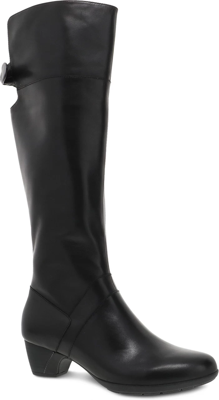 Englin’s Fine Footwear presents the women’s ‘Dori’ from Dansko. Tall boots are always in style, and Dori is the perfect addition to your collection, featuring a detailed bow with a hook and loop adjustable strap at the back, and inside zip for easy on-off access. Dori features leather uppers, a removable footbed with Dansko Natural Arch technology for all-day comfort, leather sock linings, and a rubber outsole for long lasting wear.