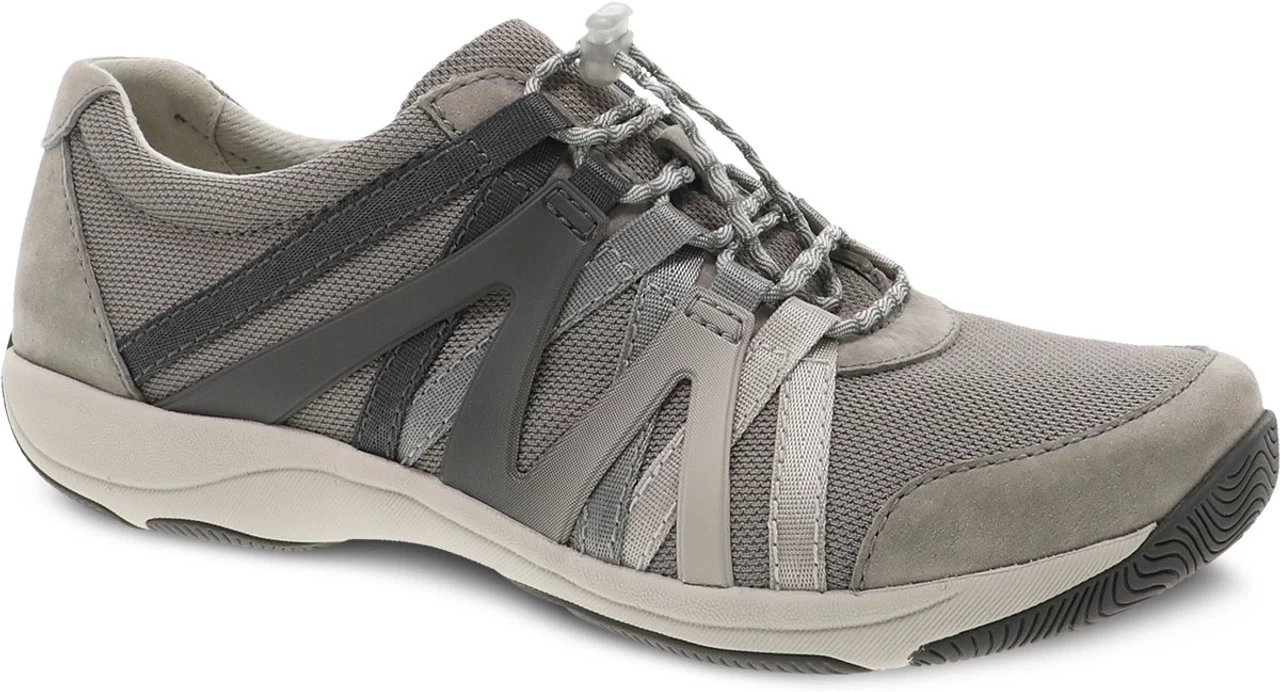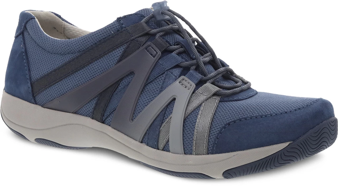Englin’s Fine Footwear presents the women’s ‘Henriette’ from Dansko. The Henriette sneaker features webbing detail for a sporty look, adjustable bungee laces, stain-protected leather uppers, soft textile linings for all-day comfort, a removable footbed with Dansko Natural Arch technology, contoured PU footbed with memory foam and built-in arch support for all-day comfort, and a rubber outsole for long-lasting wear.
