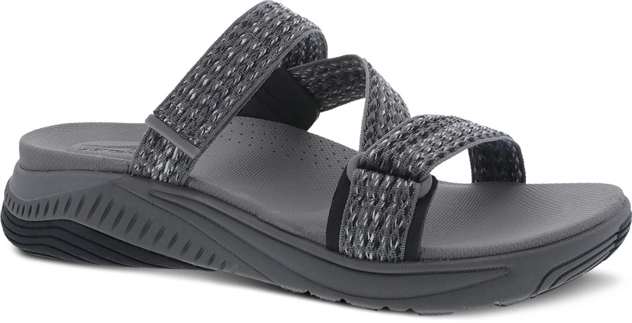 Englin’s Fine Footwear presents the women’s ‘Rosette’ from Dansko. Walk all day and all night in the Rosette sandal. This sandal incorporates the performance outsole of the popular Pace and Penni sneakers, so you can walk the extra mile. An open back sandal that is constructed from recycled webbings with multiple points of hook and loop adjustability, Rosette also features an energy return EVA footbed with Dansko Natural Arch technology for added support, a Propel forepart, a lightweight EVA midsole, and a high abrasion rubber outsole.