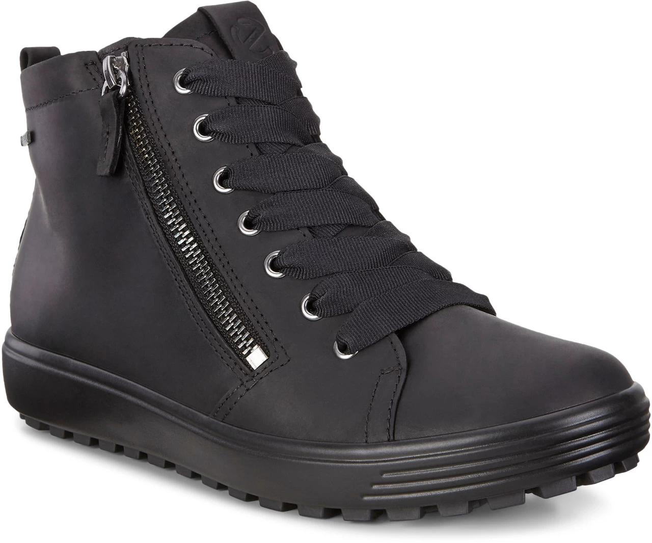 Englin’s Fine Footwear presents the women’s ‘Soft 7 Tred GTX Hi’ from ECCO. Detailed with contemporary asymmetric zips and made from rich ECCO leather, this understated high-top sneaker has a relaxed, minimalist look. Set on a rubber sole for maximum grip, it’s lined with a soft and warm textile lining and treated with waterproof GORE-TEX® technology for comfortable year-round wear.