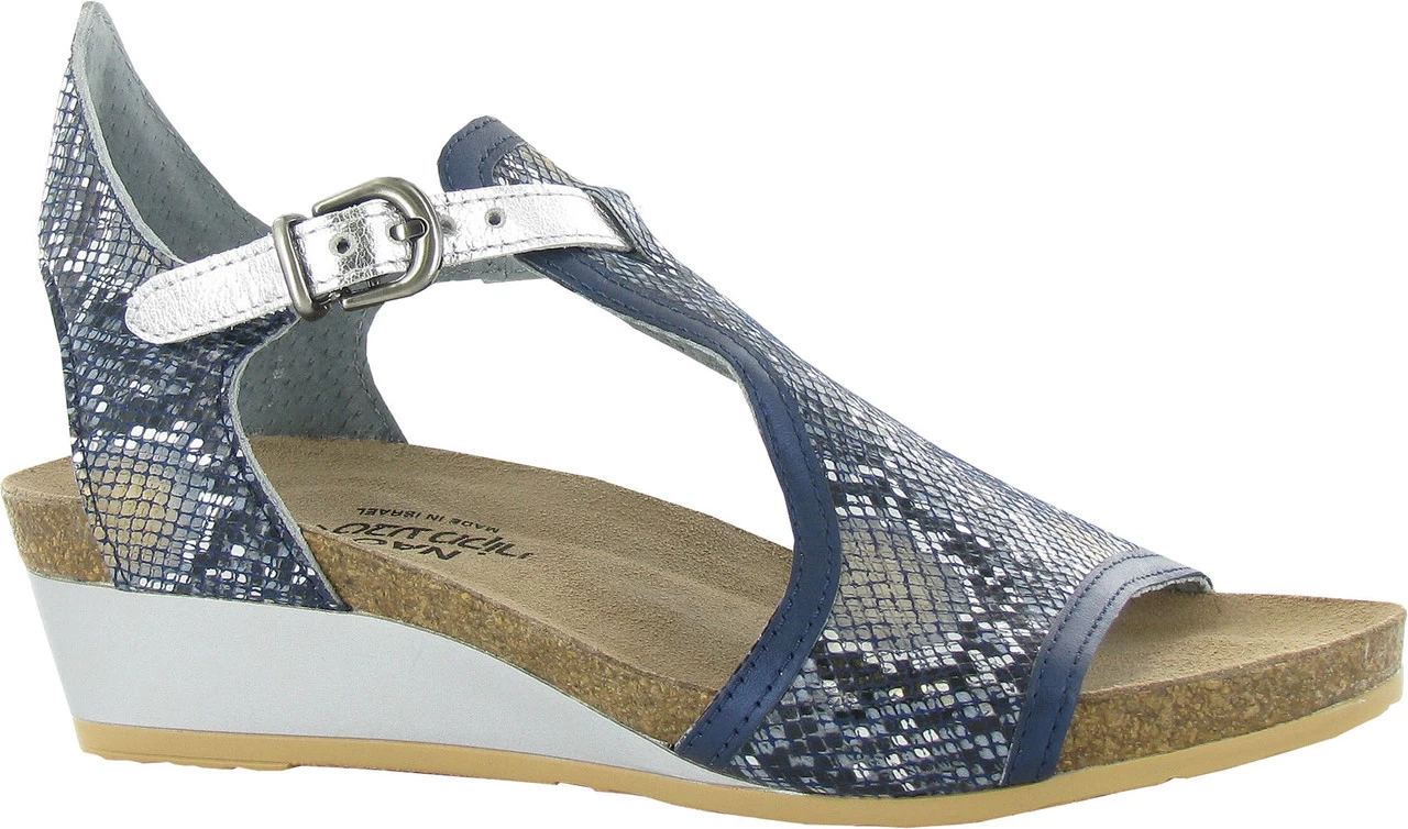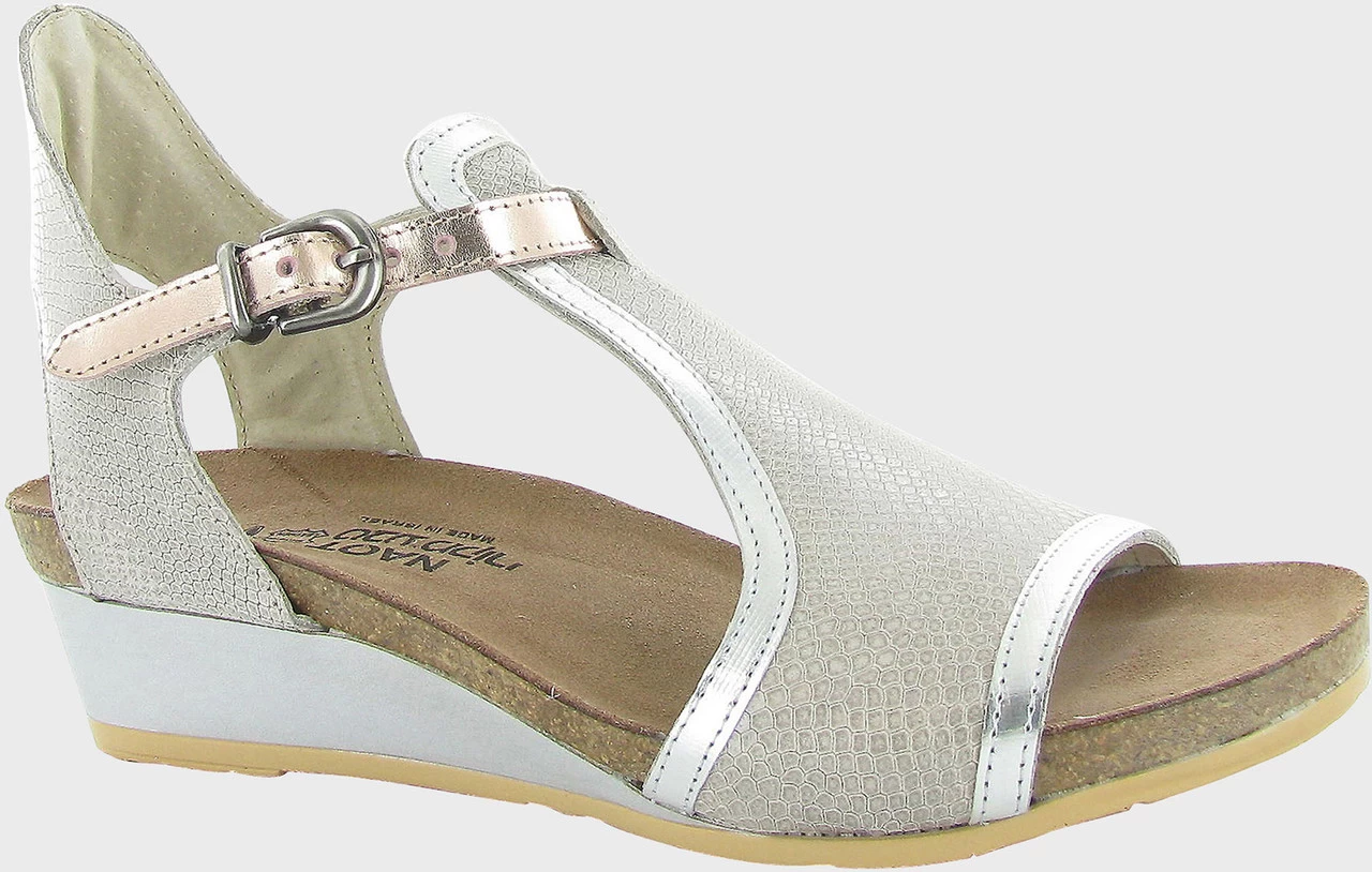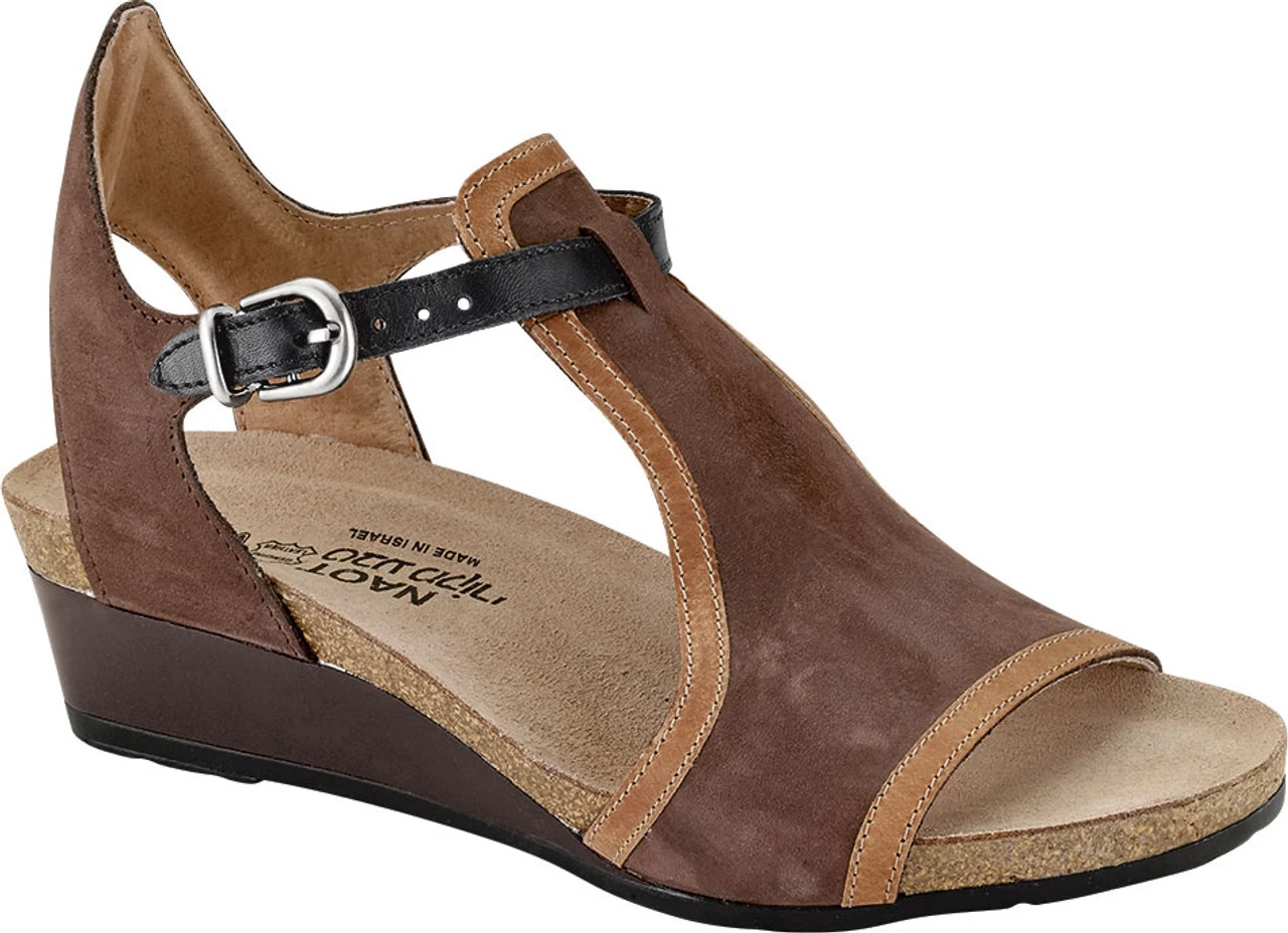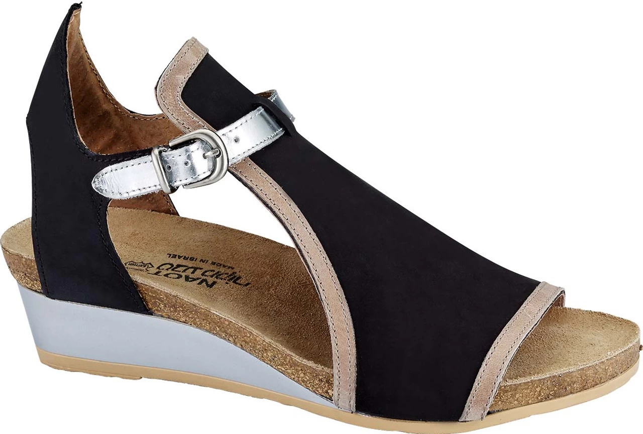 Englin’s Fine Footwear presents the women’s ‘Fiona’ from Naot. The Fiona is the perfect transitional wedge. This style features a full coverage upper with a contrasting trim. A functioning buckles creates accessibility while the padded heel cup provides comfort. Naot’s anatomic cork & latex footbed is wrapped in a pampering suede and molds to the shape of the foot with wear.