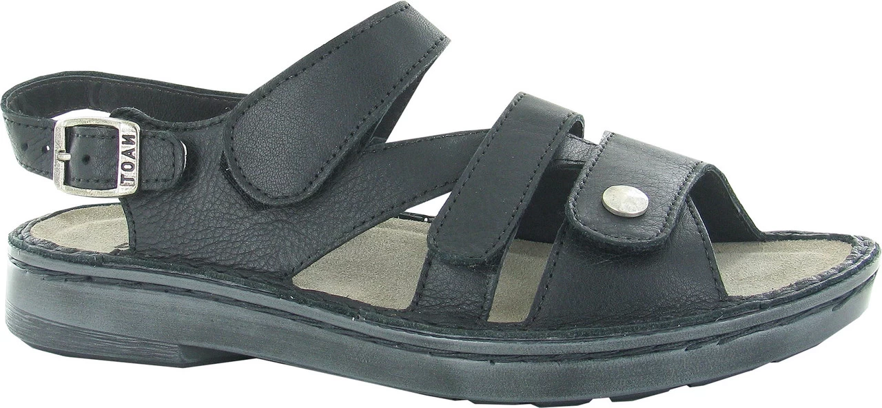 Englin’s Fine Footwear presents the women’s ‘Fleur’ from Naot. The strappy design of the Fleur comfortably secures your foot. A perfect fit with an adjustable buckle & snap closure and four hook & loop straps. The leather lining allows for all day comfort, while Naot’s removable, anatomic cork & latex footbed is wrapped in pampering suede and molds to the shape of the foot with wear. The Utopia Collection features a 1.25″ polyurethane sole which is extremely lightweight and durable.