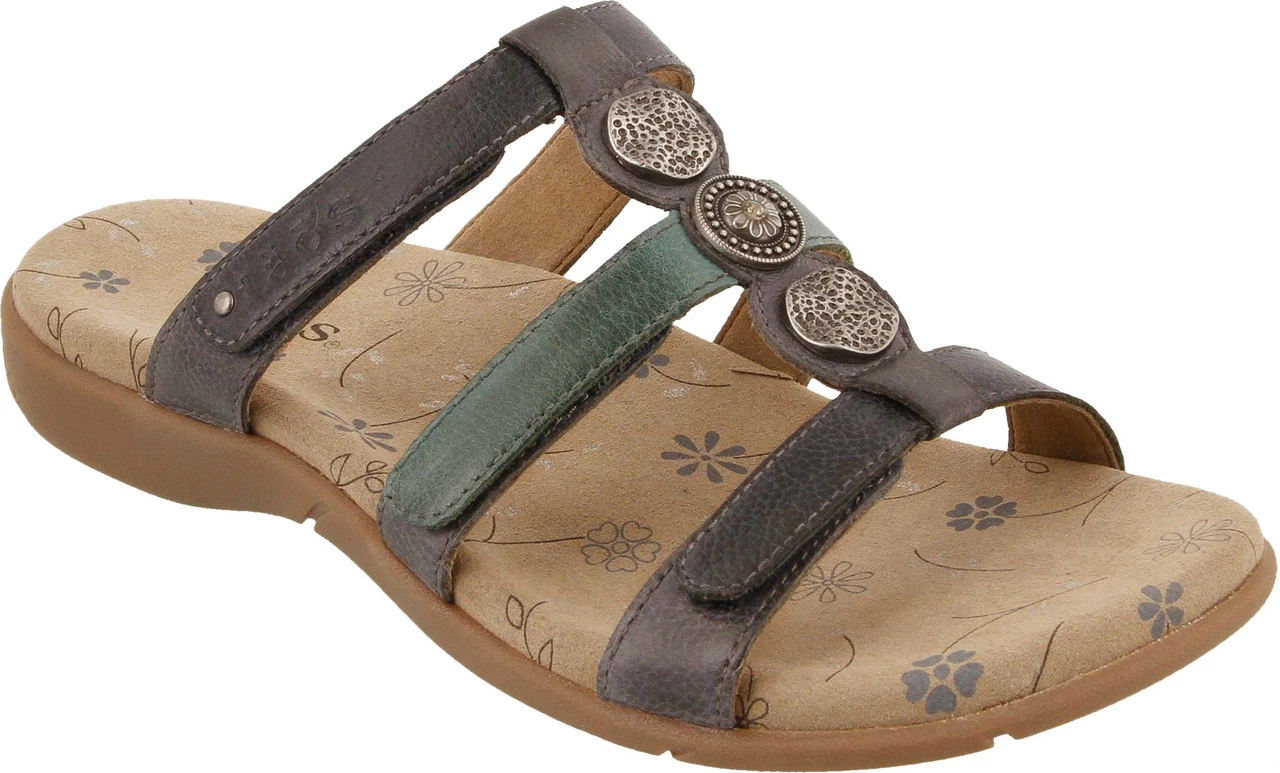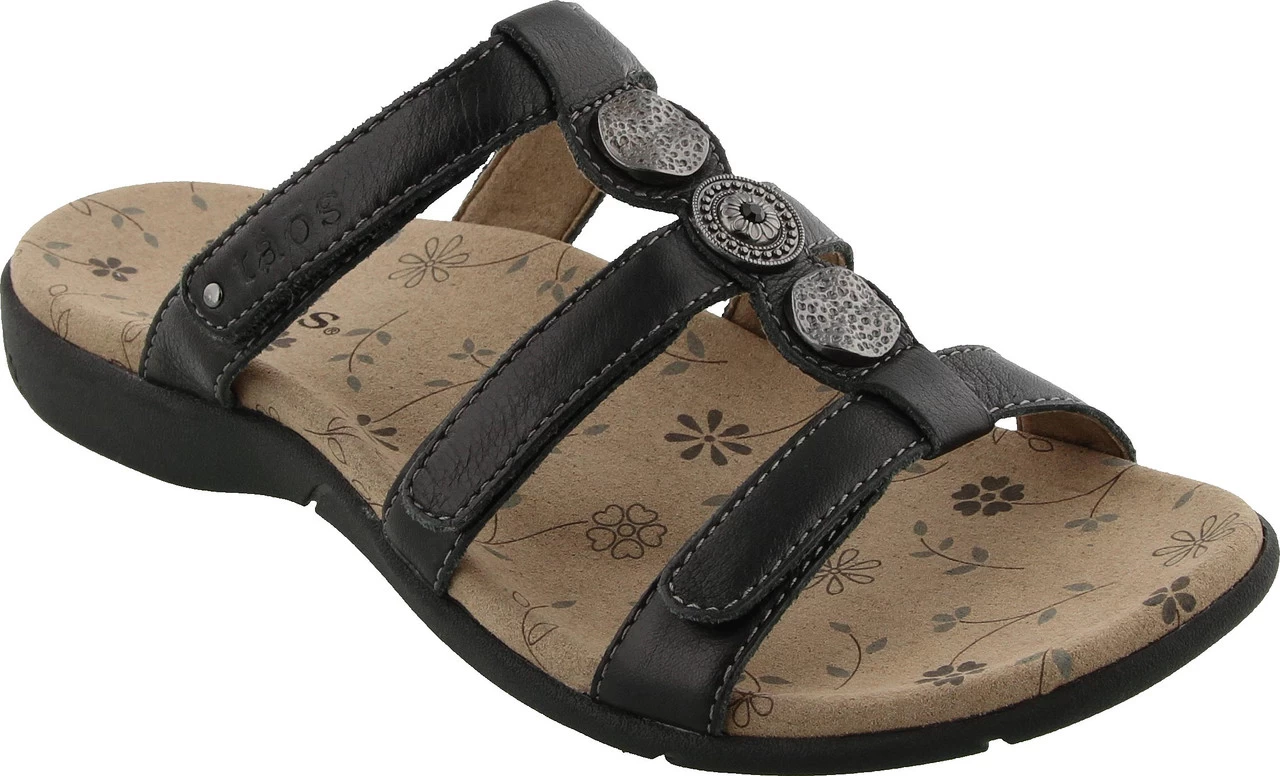 Englin’s Fine Footwear presents the women’s ‘Prize 3’ from Taos. This go anywhere leather sandal is right for just about any occasion and really will become your prize possession. The medallion and jewel hardware adds beauty and personality. Three hook and loop straps deliver the perfect fit, while outstanding comfort comes from Taos Soft Support™. Taos Soft Support™ features our premium footbed with arch and metatarsal support and Cool Recovery Foam®.