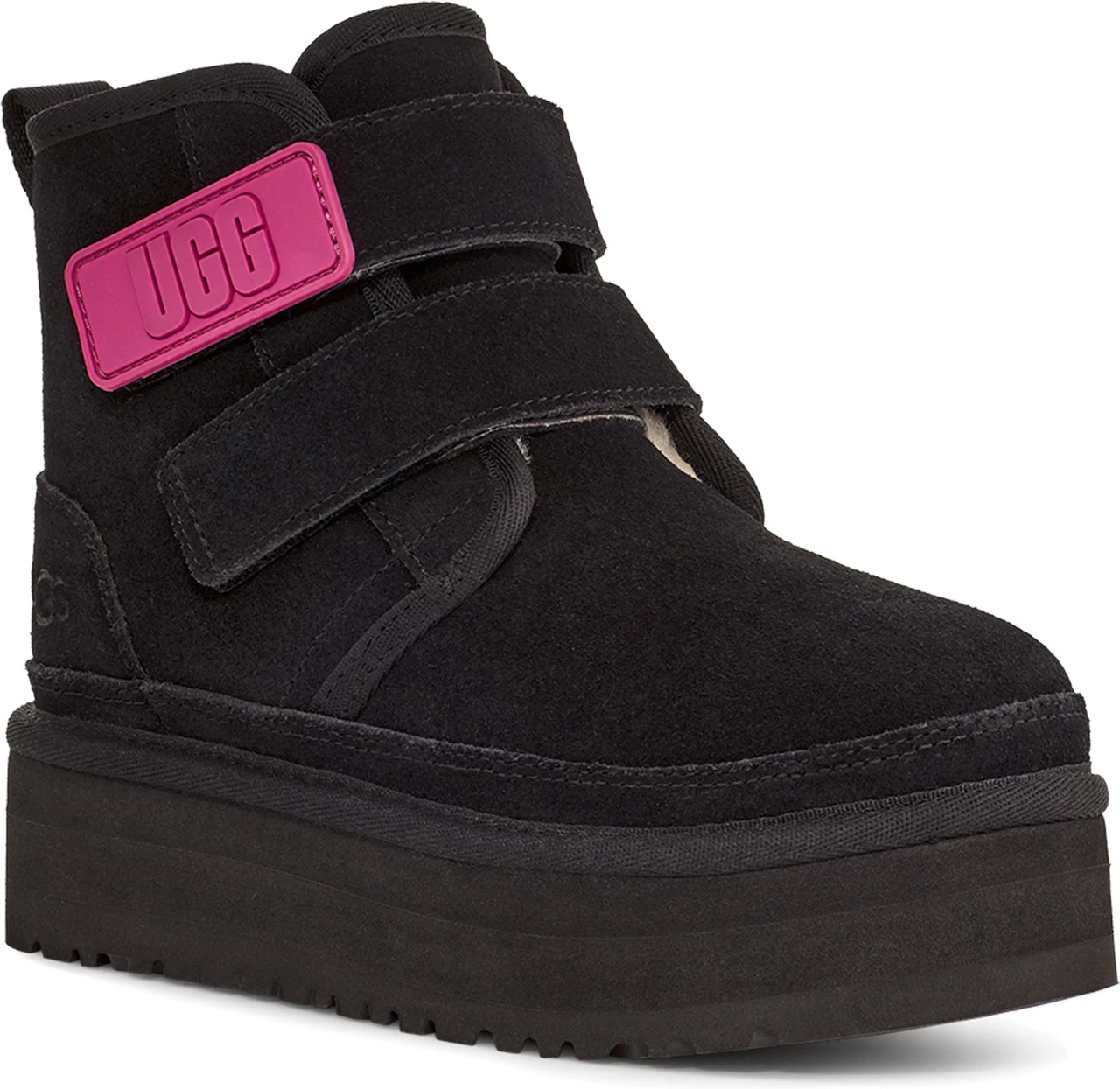 Englin’s Fine Footwear presents the children’s ‘Kids Neumel Platform’ from UGG. Reimagining the timeless chukka for a bolder look than ever before, this Neumel reaches new heights with a leg-lengthening 1.5″ platform – offering easy on and off with hook-and-loop straps. Crafted rich suede, it’s lined in the iconic sheepskin with an UGGplush™ insole for signature softness. Pair with the matching women’s boot for cute mini-me photo ops.