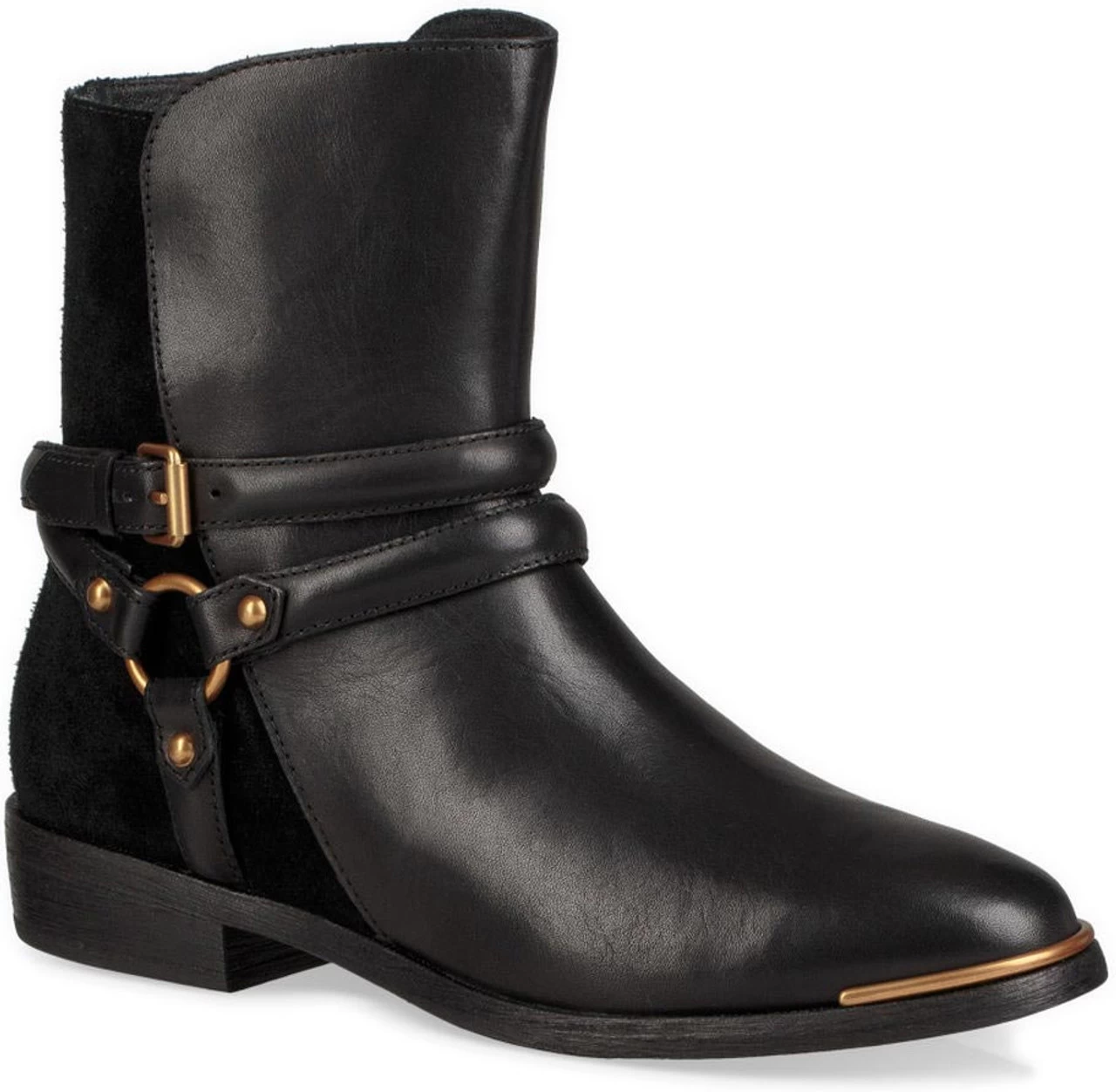 Englin’s Fine Footwear presents the women’s ‘Kelby’ from UGG. A notch above your standard harness boot, this luxe edition boasts rich leather and suede and gleaming gold hardware.